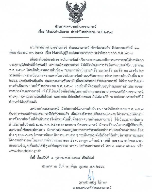 ประกาศใช้แผนดำเนินงานประจำปีงบประมาณ พ.ศ. 2569