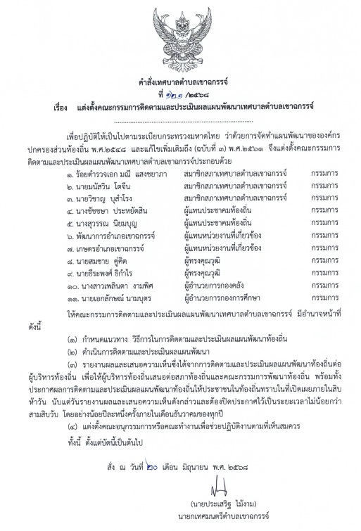ประกาศจากเทศบาลตำบลเขาฉกรรจ์