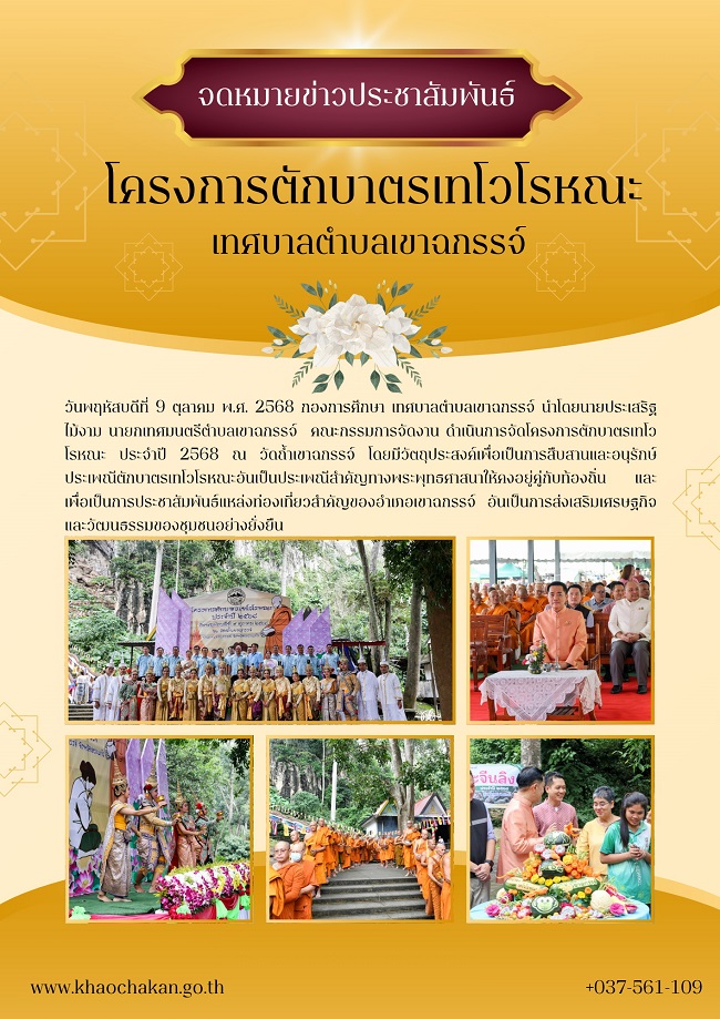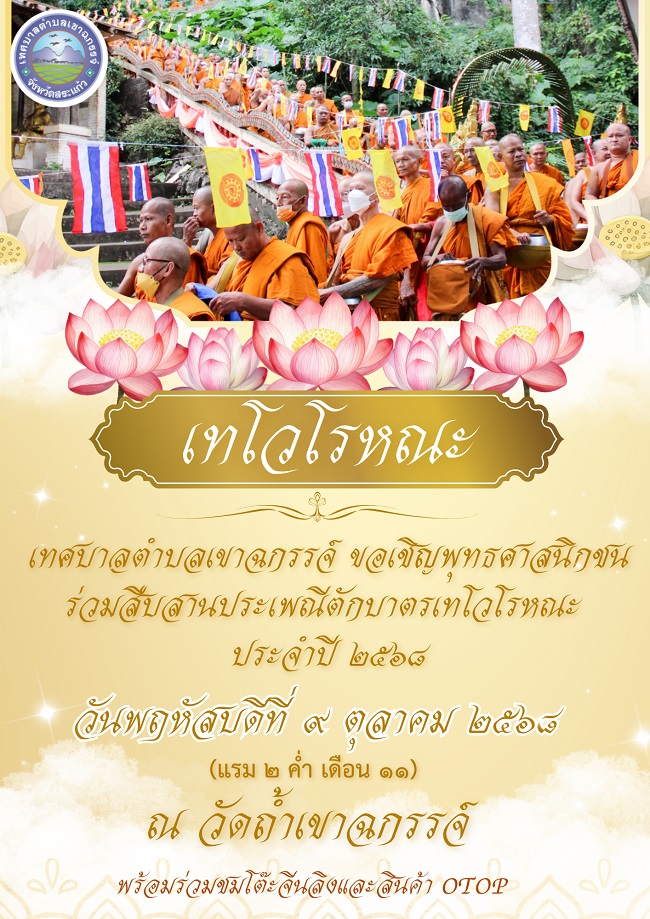 ขอเชิญร่วมสืบสานงานประเพณีตักบาตรเทโวโรหณะ ประจำปี 2568 ในวันพฤหัสบดีที่ 9 ตุลาคม 2568 ณ วัดถ้ำเขาฉกรรจ์